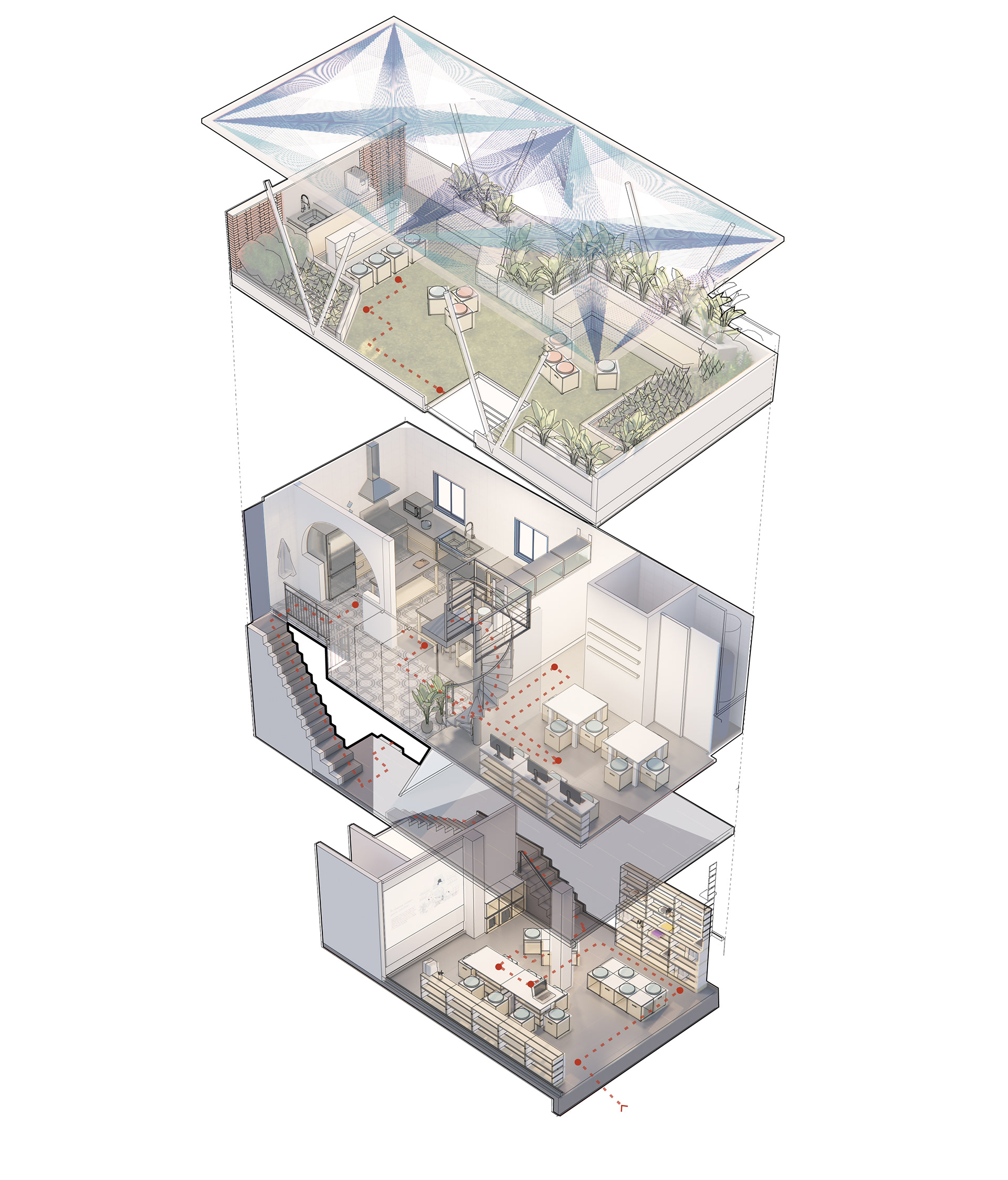 In the heart of the Barrio San Agustín del Sur, Caracas, this transformative project converts a three-story house into a vibrant educational hub through the collaborative efforts of Cota 905 Positivo and Espacio Anna Frank. The design creates a safe haven for learning and community development, featuring a ground-floor library and classroom space, second-floor culinary and digital education facilities, and a crowning rooftop garden with meditation areas.