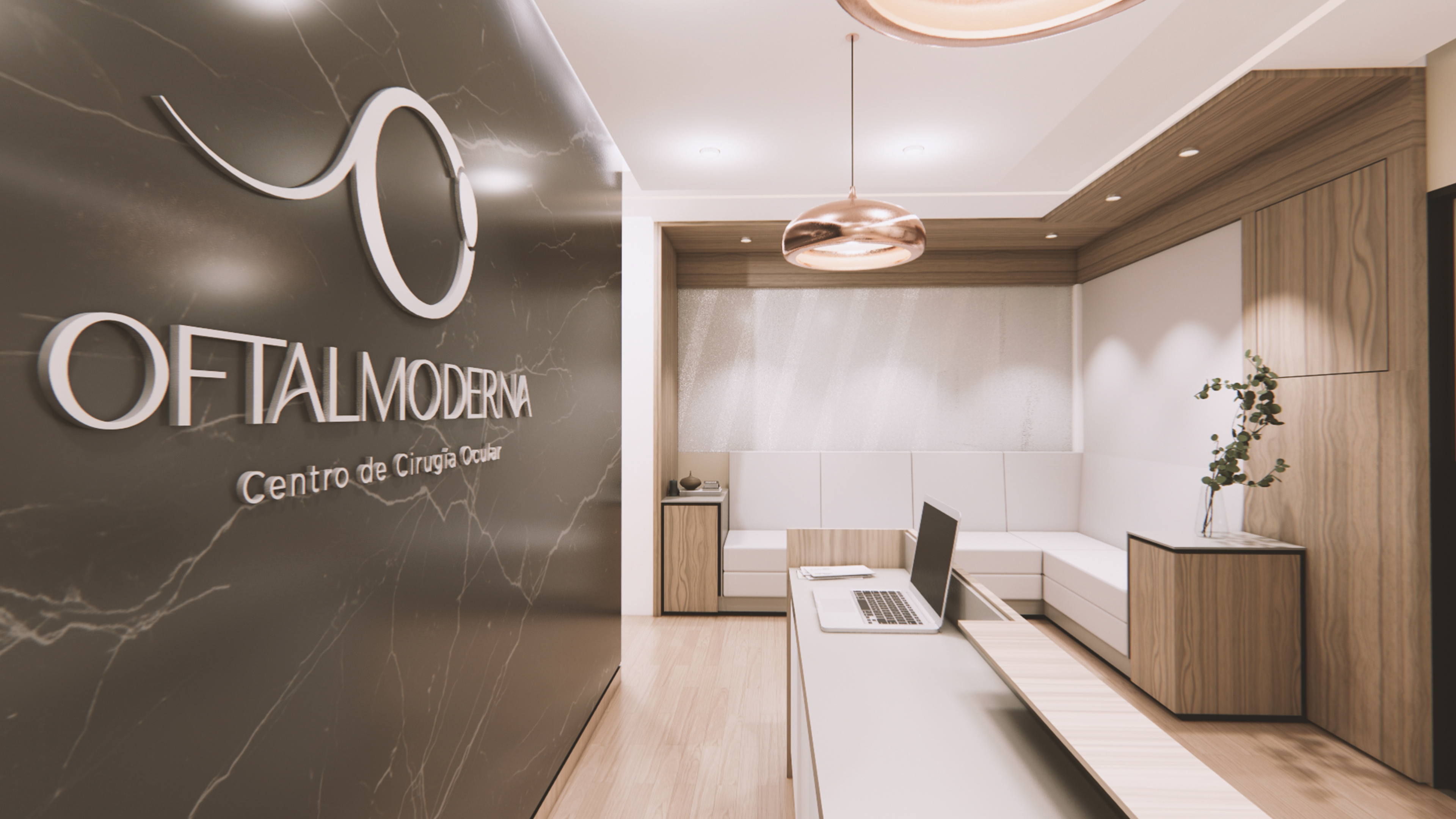 The interior design of the Oftalmoderna eye clinic in Caracas blends modern sophistication with a calming, welcoming atmosphere. To create that sophistication, neutral palettes of whites and greys were used, warmed by the use of light-colored wood on floors and feature walls, while a contrast was created with black marble wall details to create focal points. The space is thoughtfully illuminated with a combination of abundant natural light, recessed fixtures, and stylish metallic pendant lights. This harmonious combination of clean lines, rich textures, and strategic lighting moves beyond a traditional clinical feel, creating a warm yet professional environment that ensures patient comfort and confidence.