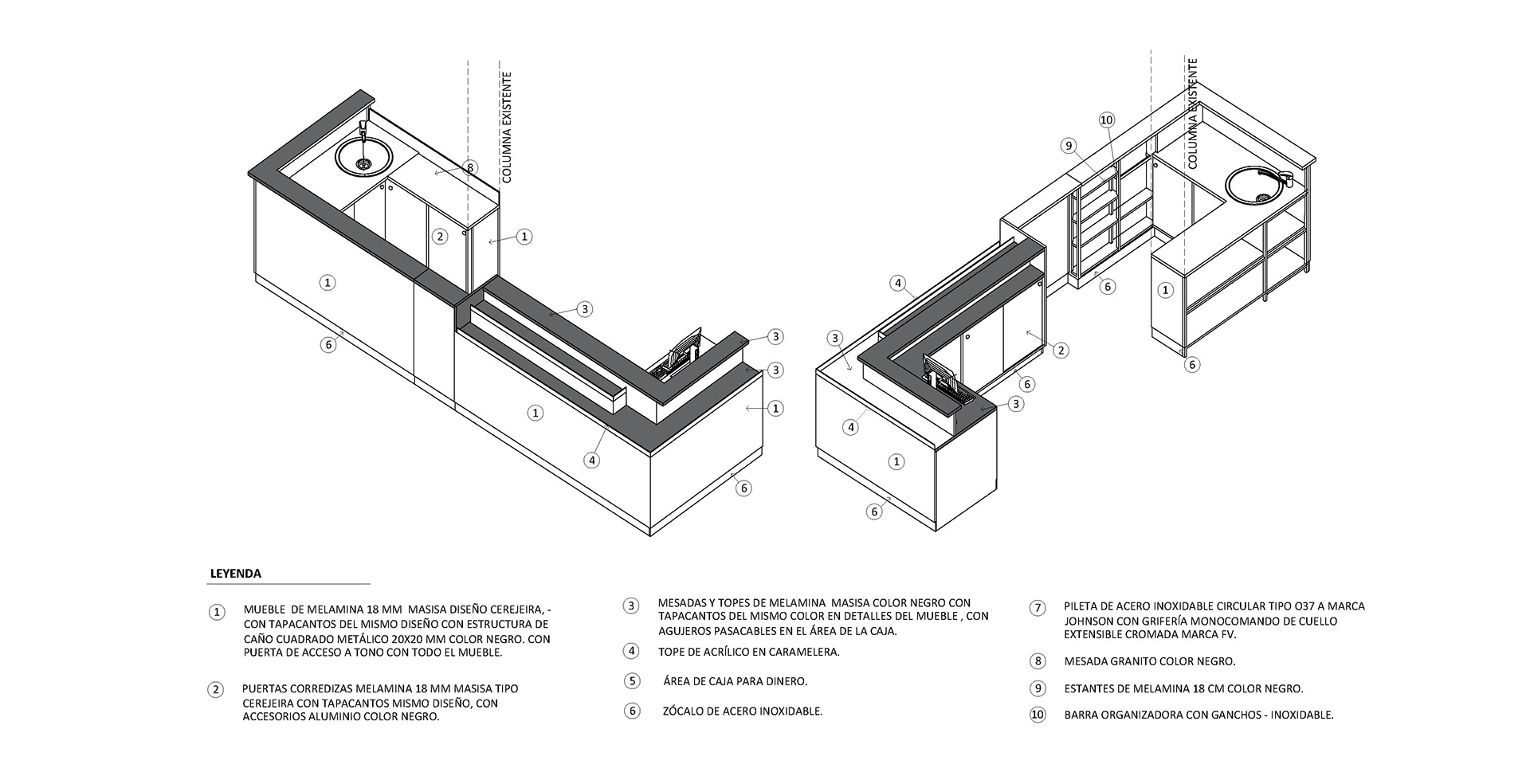 Artifacts and Electrical artifacts schematics. Store floor plans and section.