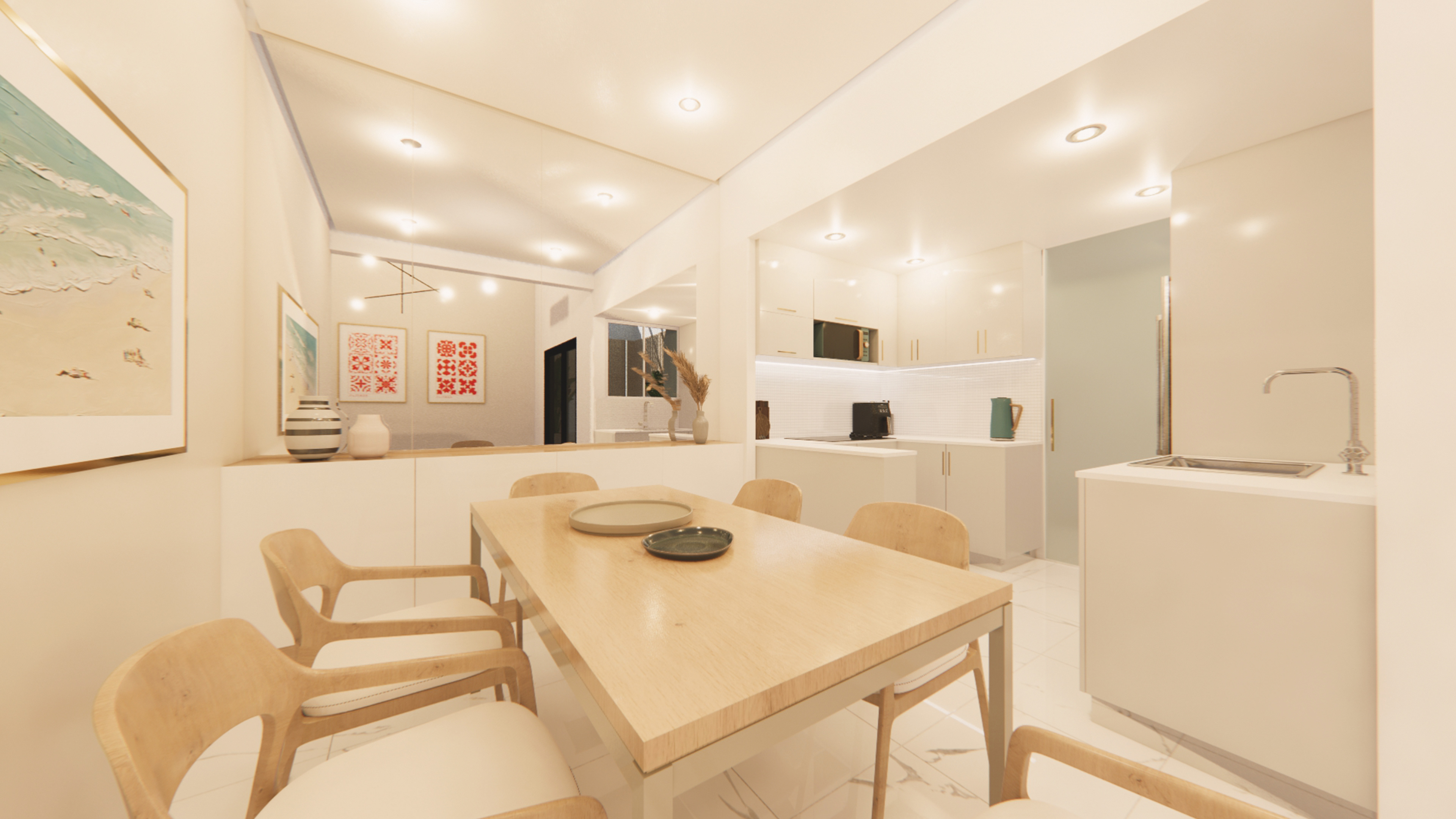 Commissioned by ZQP Ingenieros, the architectural redesign and interior renovation of a single-family residence focused on spatial fluidity and programmatic continuity. This project utilizes double-height spaces and a neutral material palette to optimize natural light, while integrating social areas with a private patio featuring a jacuzzi. To maximize the footprint, the design incorporates bespoke cabinetry and custom millwork alongside selected contemporary furniture, resulting in a cohesive, functional aesthetic.